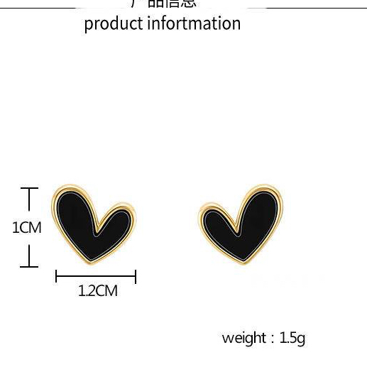 Detail S925 Perak Jarum Hitam Cinta Hati Anting Kecil Temperamen Indah Desain Niche Anting Sederhana Harian