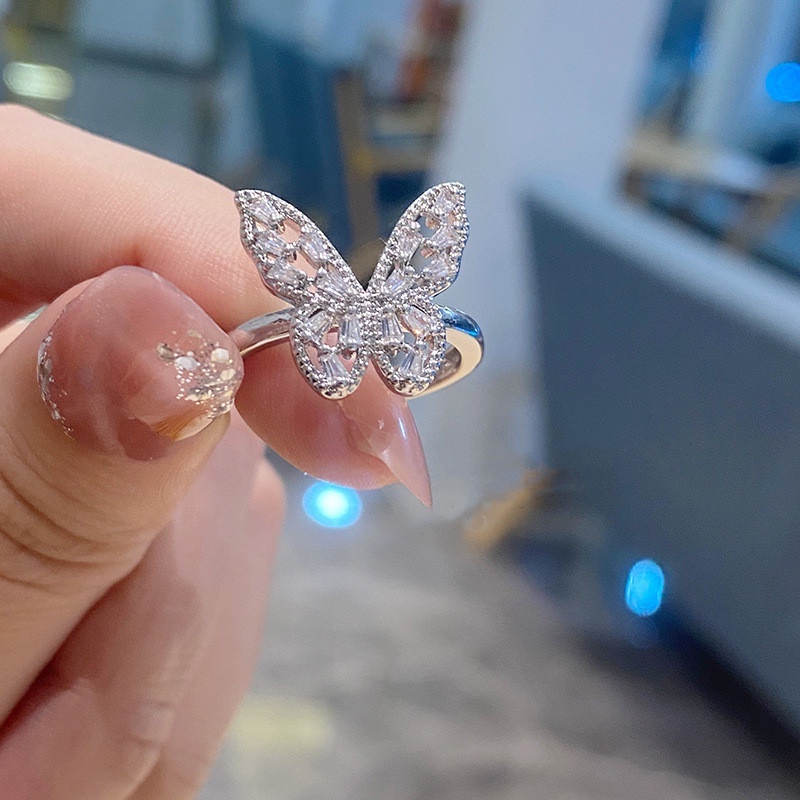 Aksesoris Fashion > Cincin > S925 Perak Jarum Super Peri Temperamen Penuh Berlian Zirkon Bertatahkan Berlian Tiga Dimensi Kupu-Kupu Pola Anting-Anting Perempuan Versi Korea Retro Anting-Anting