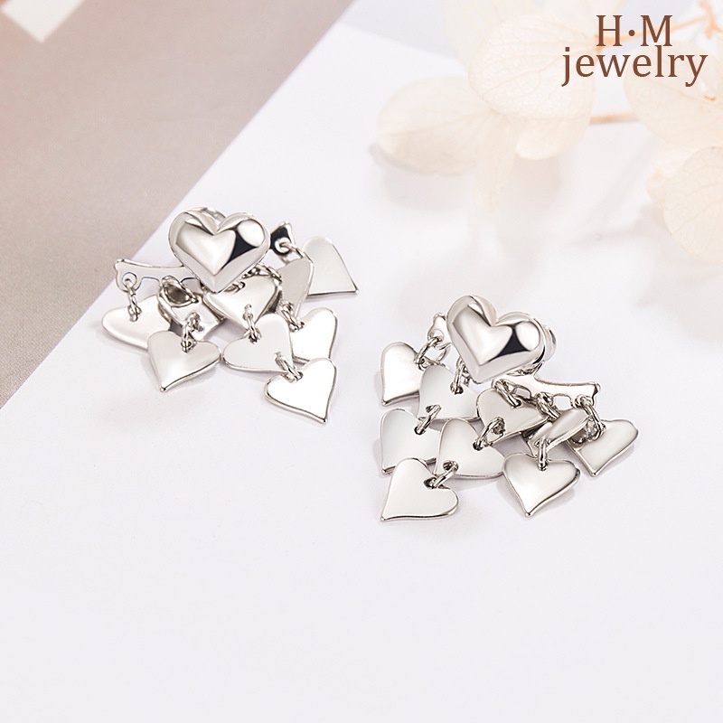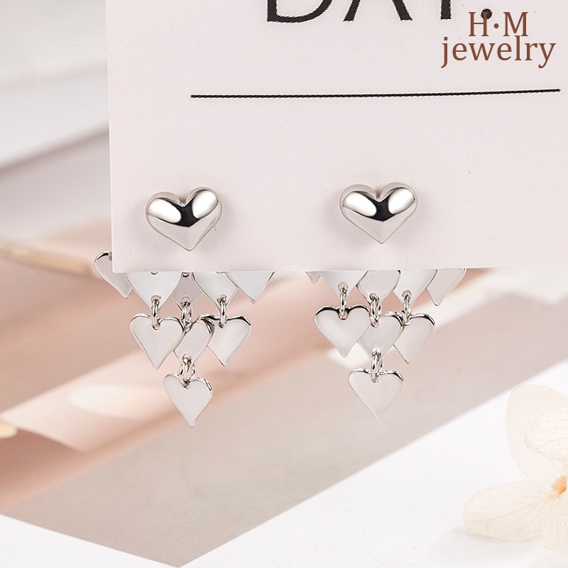 Detail S925 Perak Ringan Mewah Bermutu Tinggi Jantung Anting Rumbai2023 Baru Anting Dua Potong