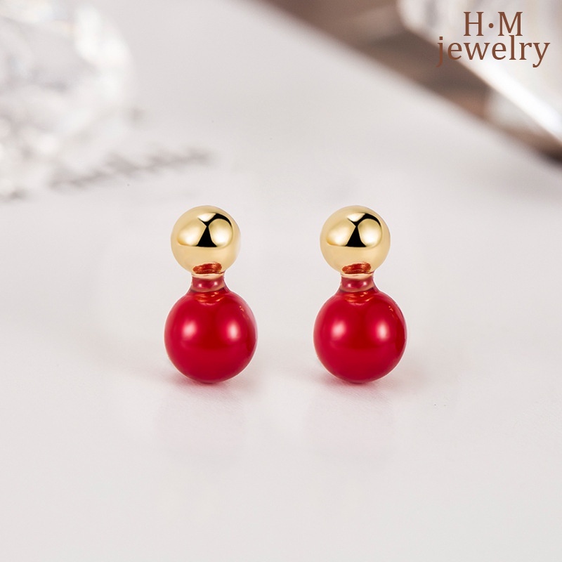 Detail S925 Perak Vintage Red Bean Stud Earrings Indah Cahaya Mewah2023An Anting Baru