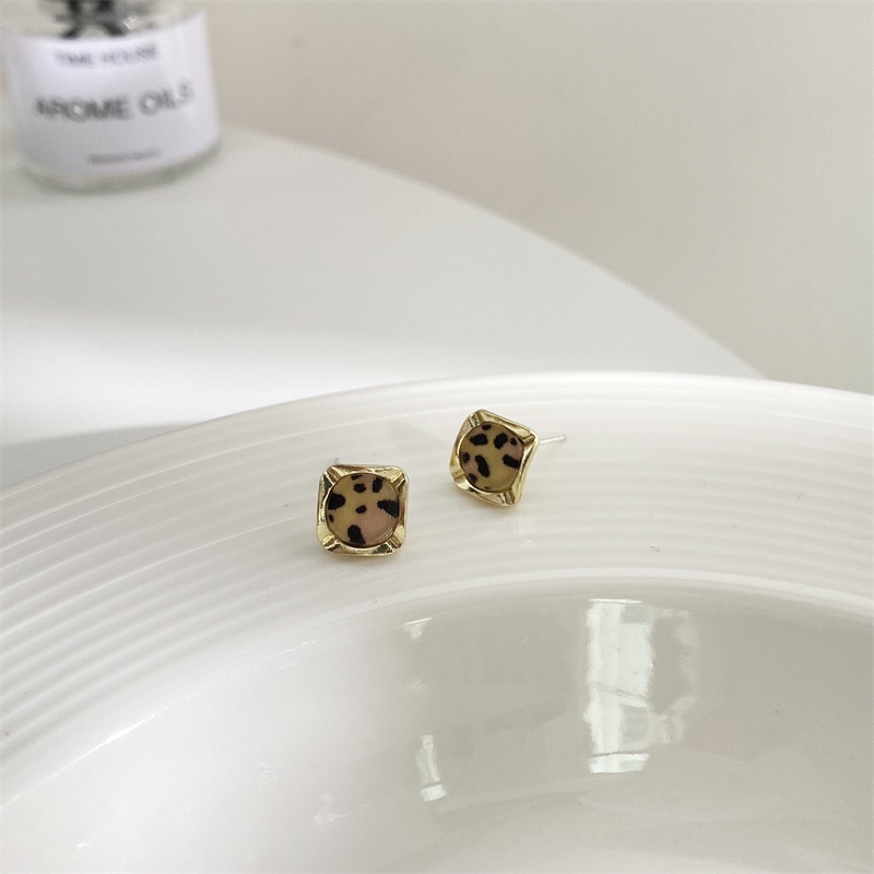 Detail S925 Silver Needle Korean Small Leopard Print Earrings Female Earrings Cute Small Earrings Female