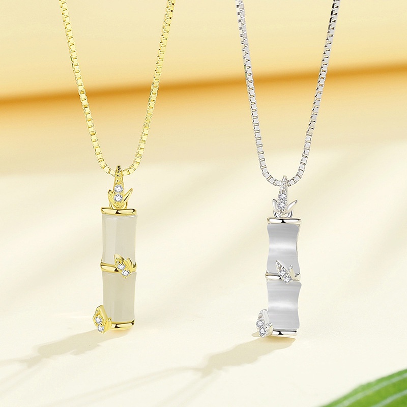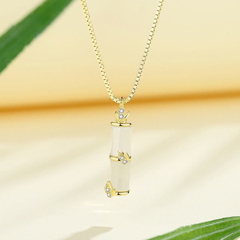 Aksesoris Fashion > Kalung > S925 Sterling Perak Bambu Kalung Perempuan Retro Niche High-End Cahaya Mewah Merasa Klavikula Rantai Influencer Berkelas He