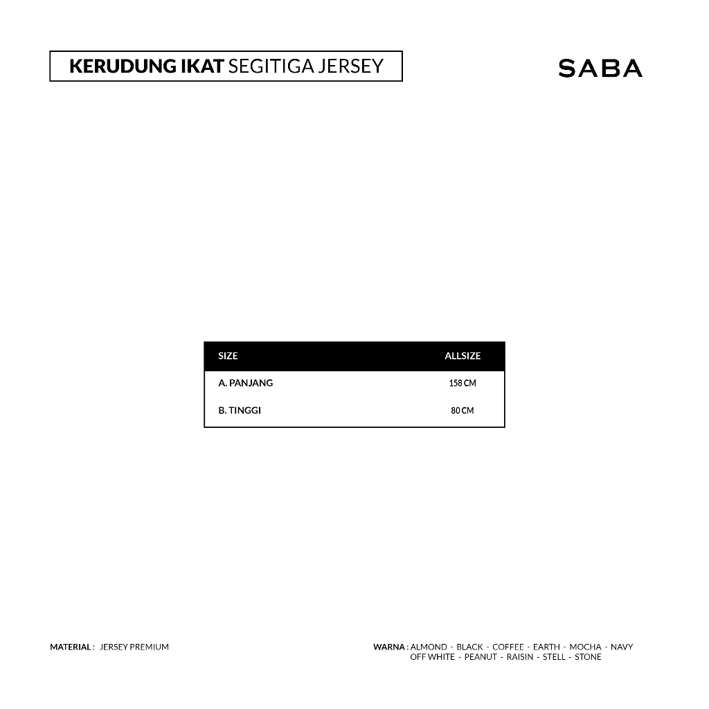 Deskripsi Produk: 1. Kerudung instan berbentuk segitiga model ikat tanpa ciput 2. Cuttingan kerudung didesain agar lipatan di kiri-kanan membingkai wajah dengan cantik dan tidak membuat wajah bulat 3. Menggunakan material Jersey Premium yang ringan dan adem, cocok untuk iklim tropis 4. Stay di kepala seharian karena bahan tidak licin, tidak mudah melorot, dan tidak mudah jatuh saat disampirkan ke bahu 5. Tidak menerawang, bisa dipakai tanpa ciput 6. Detail jahit tepi kualitas terbaik, super rapi 7. Cara pakai sangat mudah dan cepat 8. Ukuran Panjang x Tinggi: 158 cm x 80 cm
