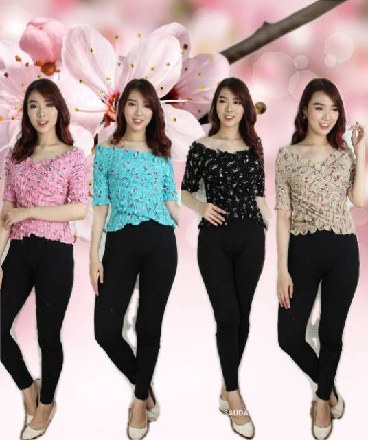 Video perkenalan produk Sabrina kerut silang flower (sabrina kerut silang motif). Sumber: Shopee.