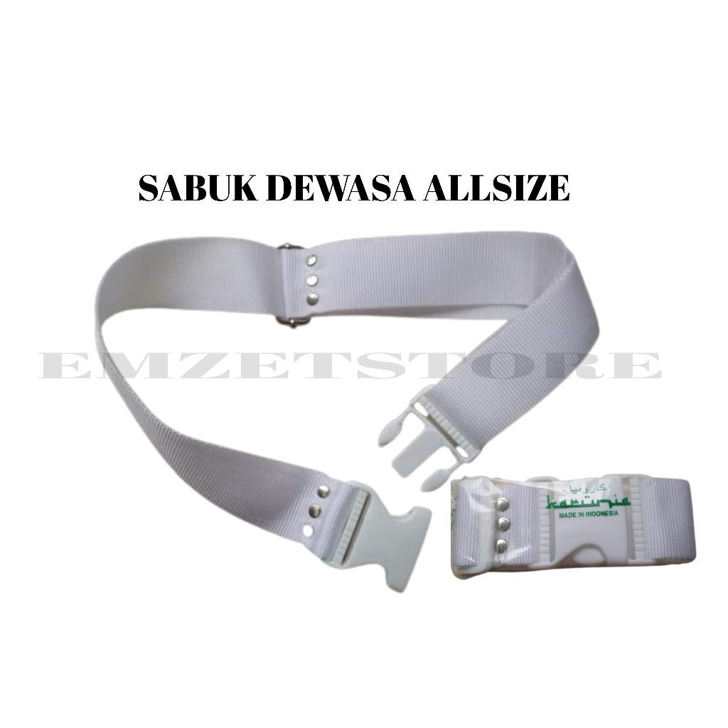 --- Sabuk Ihrom Dewasa--- Sabuk Ihrom / Ikat Pinggang Ihrom Kepala Kecil Tanpa Jahitan Digunakan Agar Kain Ihram Yang Digunakan Tidak Melorot Turun Akibat Ikatan Yang kurang Kuat. Sehingga Pengguna Lebih Khusyuk Dalam Menjalankan Ibadah Haji dan Umroh **Sabuk allsize tanpa Dompet** -Ukuran sampai linggkar pinggang 115 cm ( dari size M,L,XL,XXL) -Lebar sabuk 5 cm -Warna Putih -Packing tanpa Dus