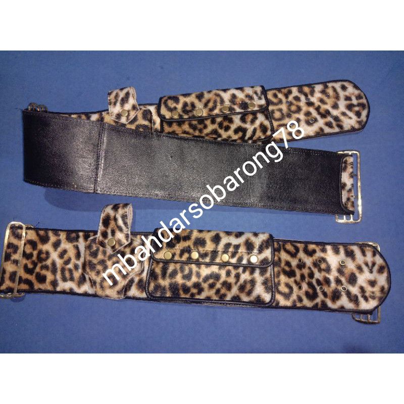 Sabuk othok dari bahan kulit yang dilapisi kain bludru dengan motif macan, timangan kuningan sehingga awet dipakai, dompet samping bisa buat tempat hp, dan rokok. panjang 112 cm dan lebar 11cm.