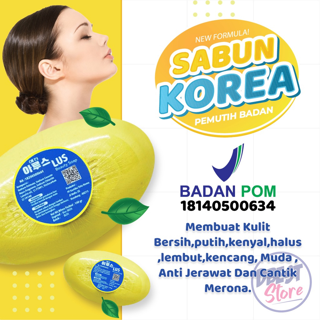 Sabun Korea adalah sabun pemutih tubuh yang ampuh untuk memutihkan bagian tubuh seperti ketiak dengkul dan sikut, terbuat dari bahan alami yang aman dan tanpa efek samping