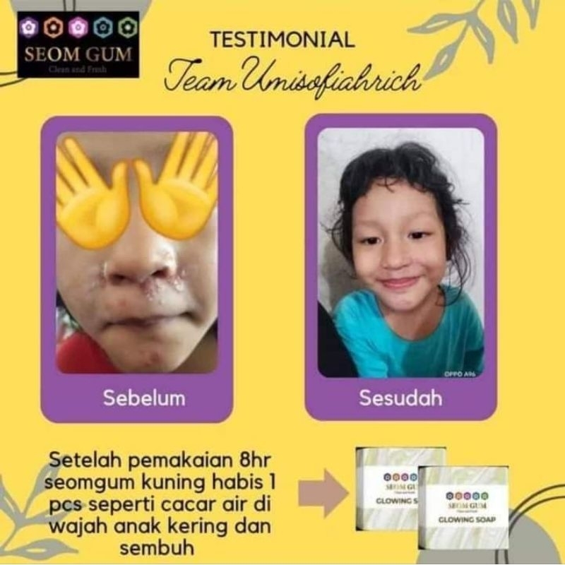 Manfaat Glowing Seom Gum : ~ Mencerahkan Kulit secara Cepat Merata ~ Melembabkan Kulit dan Menghaluskan ~ Membantu Mengurangi Jerawat ~ Mengurangi Kepadatan pigmen kulit ~ Mengurangi Flek gelap/ dark spot, dll