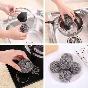 Gunakan sabut stainless untuk membersihkan kerak membandel Bersihkan kerat dari sabut setelah mencuci