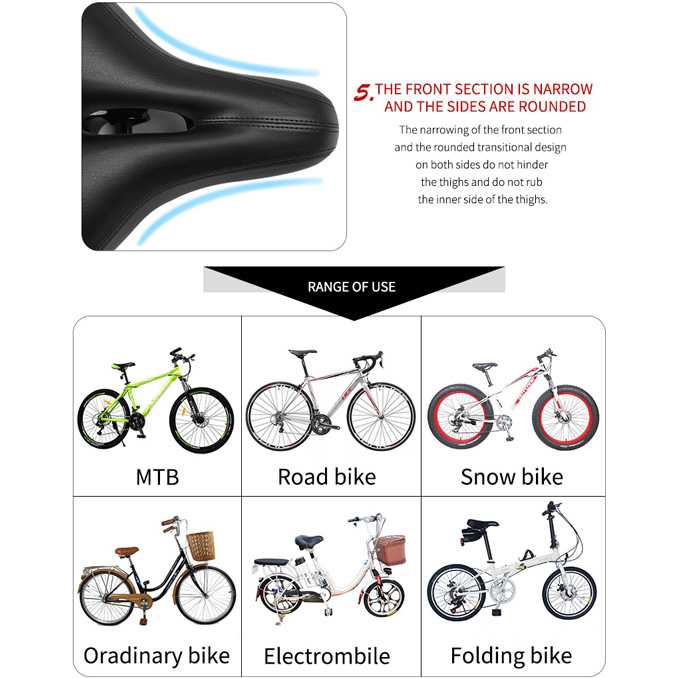 Easy Installation and Universal Compatibility Sadel sepeda ini dapat digunakan untuk berbagai jenis sepeda. Anda pun bisa memasangnya dengan mudah, tanpa mesti repot-repot ke bengkel sepeda.