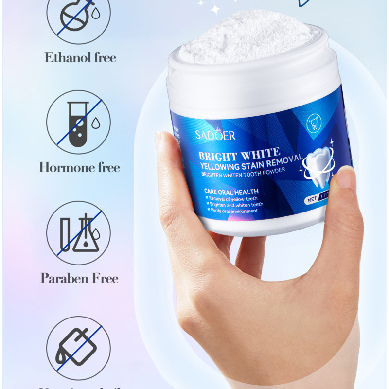Detail SADOER Teeth Whitening Powder Pemutih Gigi Pasta Gigi Sikat Menghilangkan Noda Pemutih Gigi Bubuk Mutiara Putih 50g