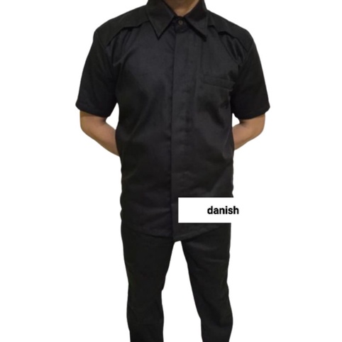 setelan safari satpam terbaru lengan pendek.bahan bahan twist.stok ready.celana mulai ukuran 30 sampai 40.tulis ukuran celana yg diinginkan d catatan
