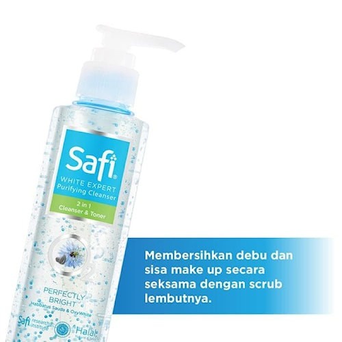 SAFI WHITE EXPERT PURIFYING CLEANSER 2 IN 1 CLEANSER & TONER merupakan pembersih wajah 2 aksi, dimana gel pembersih wajah yang mudah dibilas ini mengandung ekstrak habbatus sauda dan teknologi oxywhite yang dapat membantu membersikan debu dan sisa make up secara seksama dengan scrub lembutnya.