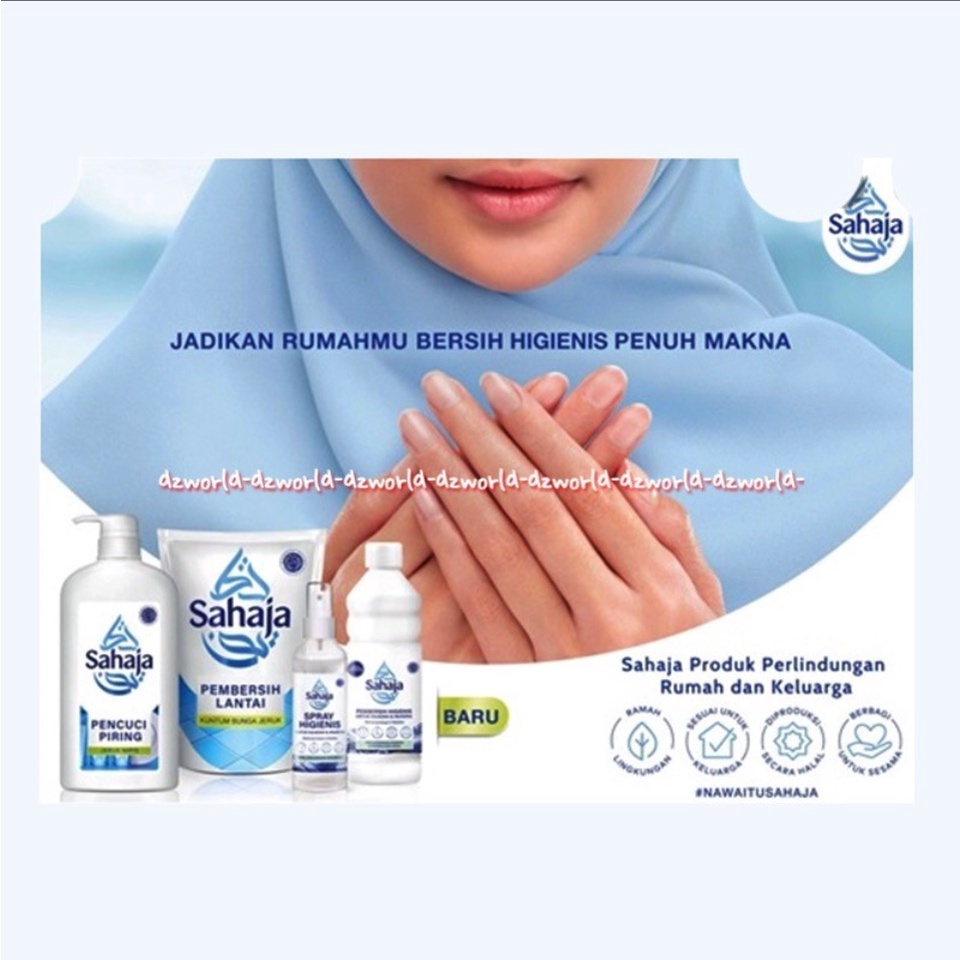 yaitu : 1) Menggunakan Surfaktan Ramah Lingkungan, 2) Sesuai untuk keluarga (tanpa Fosfat, tanpa Paraben, tanpa pewarna), 3)Diproduksi secara halal dan thayyib, 4)Berbagi untuk sesama. Setiap penjualan, Sahaja berkomitment untuk menyisihkan sebesar 2.5% penjualan untuk shadaqah ke komunitas islam melalui lembaga yang telah dipilih dan dipercaya. Tersedia dalam sabun cuci piring botol, dan sabun cuci piring refill.