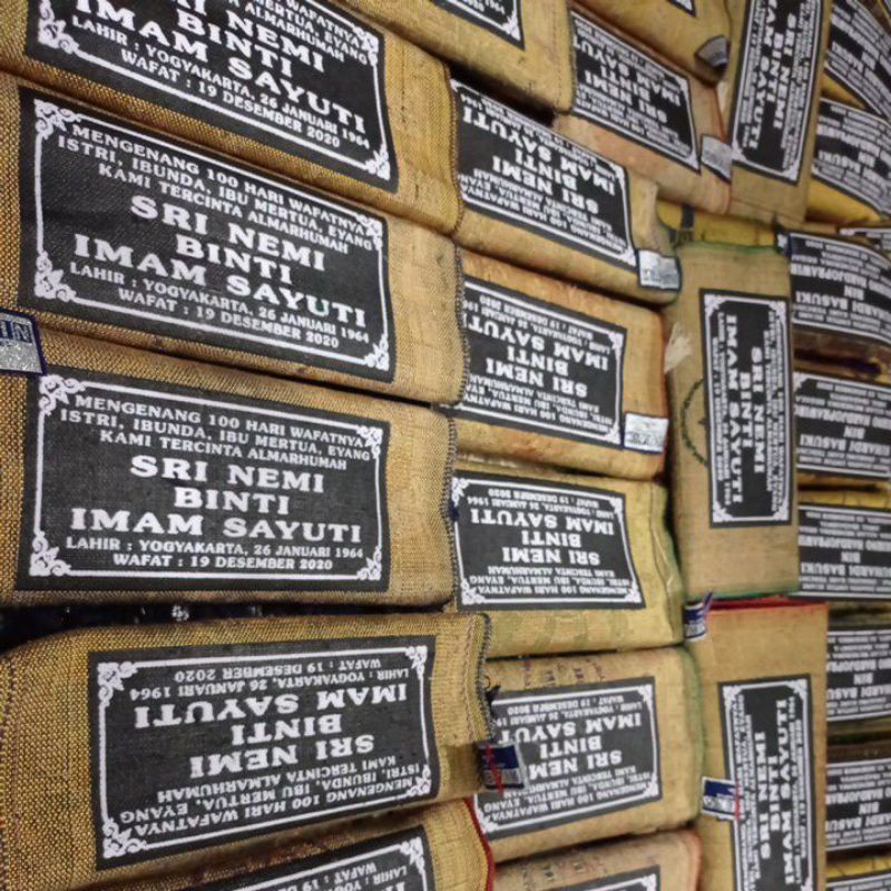Sedia JASA SABLON custom untuk sajadah dengan posisi di belakang sajadah dengan harga terjangkau. Cocok untuk sovenir tahlilan / oleh-oleh haji / peringatan 40hari - 1tahunan, dan lainnya. Memudahkan anda, tidak perlu mondar mandir ke tukang sablon. Sistem Pre Order dengan minimum pembelian, silakan cek di etalase toko untuk produk SABLON atau bisa chat kami untuk tanya lebih lanjut.