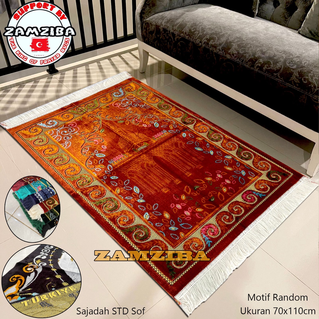 Detail Sajadah Turki PREMIUM Ukuran Dewasa 70x110cm Bahan Halus Dan Lembut Perlengkapan Sholat Pakaian Muslim Sejadah Terbaru Zamziba
