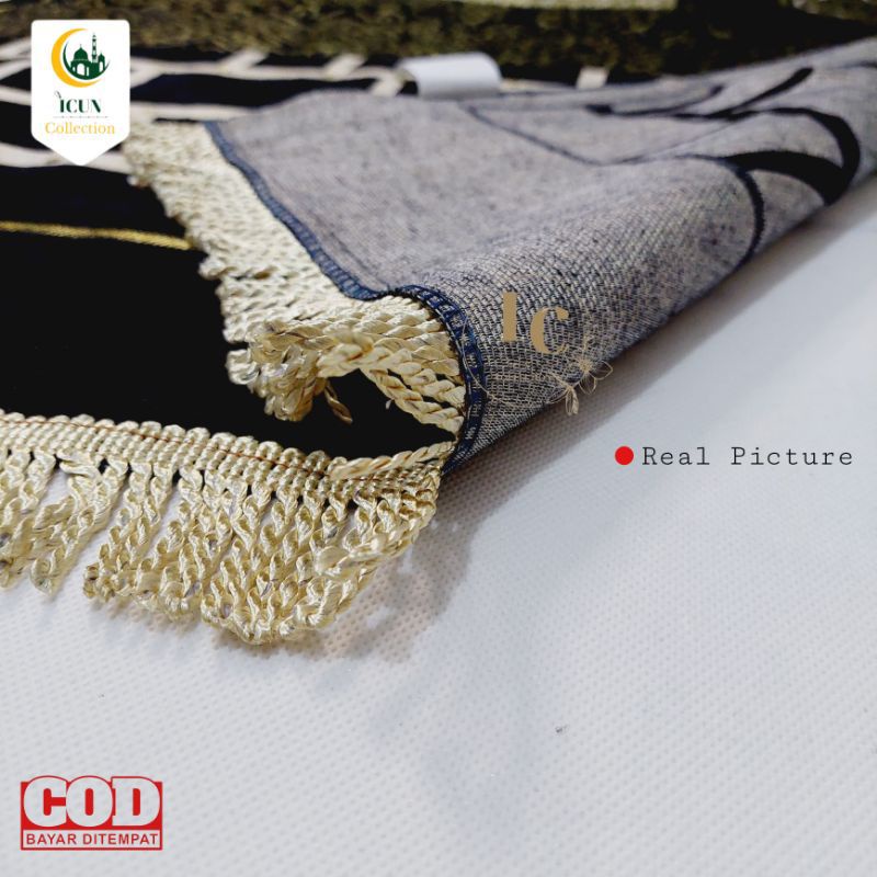 Detail sajadah turky kiswah chenil khusus hitam rumbai kepang sajadah dewasa ukuran 70×110cm