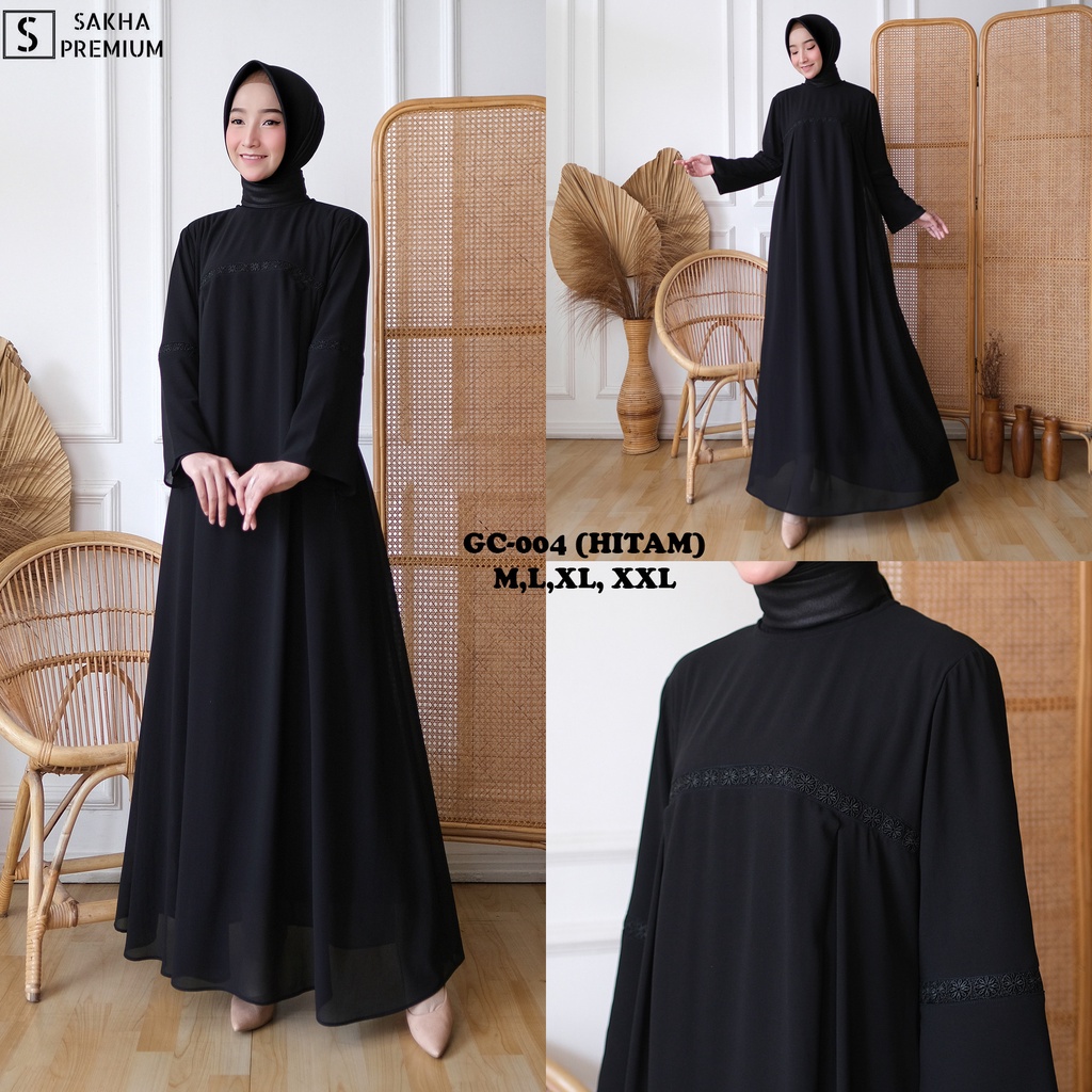 Sakha - GC 04 HITAM BAJU GAMIS PUTIH WANITA BRUKAT GAMIS PUTIH CERUTI JUMBO TERLARIS BAJU LEBARAN UMROH HAJI BUSANA KEKINIAN
