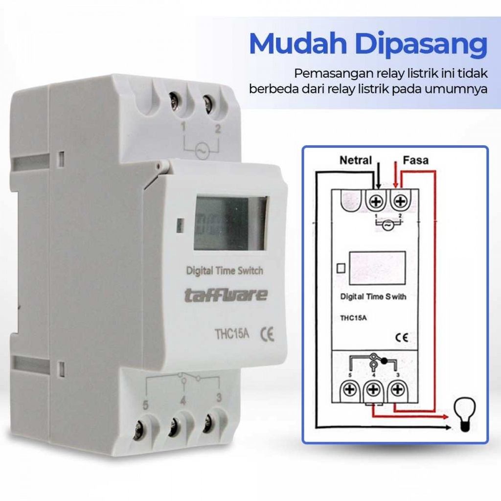 Kelengkapan Produk Rincian yang Anda dapatkan untuk pembelian produk ini: 1 x Taffware Timer Programmable Time Switch Relay 16A 220V 2000W - THC15A 1 x Panduan Penggunaan