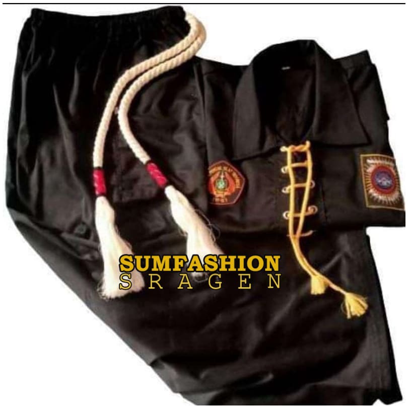 sakral pshw bahan Nagata drill GREAD A ORI kualitas unggulan terbaik, celana dan baju dan 2 bed IPSI PSHW logo pshw kotak/perisai tergantung stock tersedia,celana model tali warok tanpa sabuk