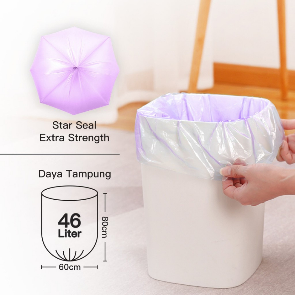 - Tersedia dalam dua ukuran - Ramah lingkungan , mudah terurai dan dapat didaur ulang - Plastik tidak mudah sobek, kuat dan lentur - Tahan panas sampai dengan 60 derajat Celcius - Extra kuat dengan seal berbentuk bintang mampu menampung beban hingga 46 L