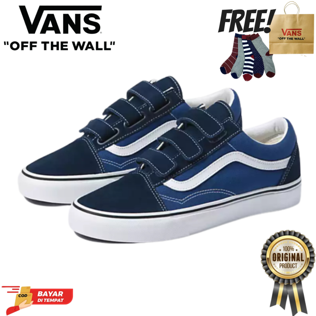 SALE DISKON! V4NS OLDSKOOL VELCR0 NAVY/WHITE CLASSIC 100% ORIGINAL BNIB