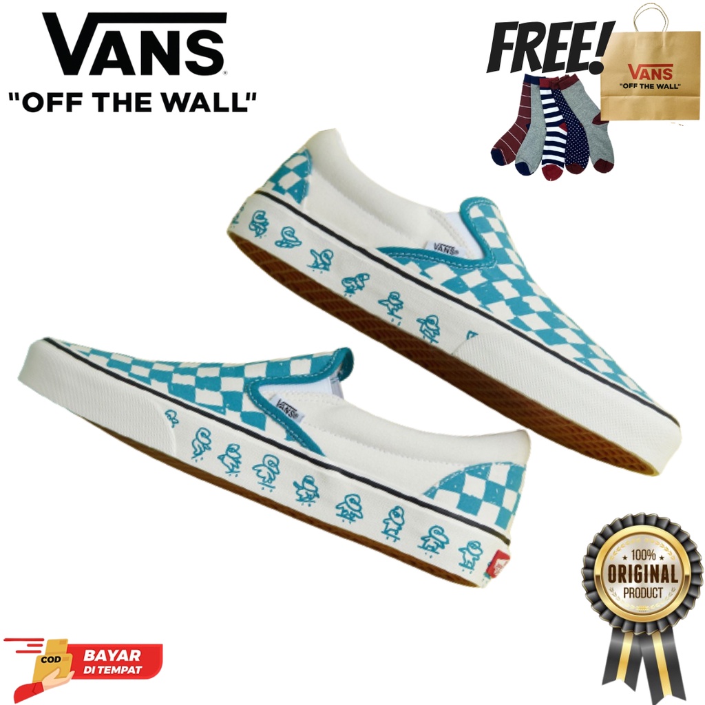 Detail SALE DISKON! V4NS SLIP-ON CHECKERBOARD X KAKAO & FRIENDS “ICE BLUE” CLASSIC 100% ORIGINAL BNIB