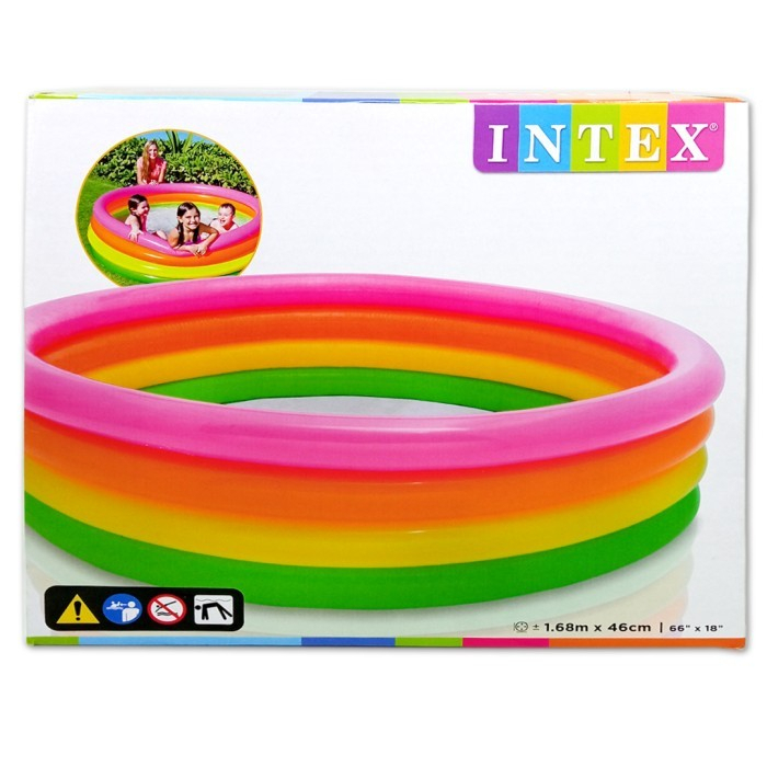 Spesifikasi Produk : - Merek : Intex - Model : Sunset Glow Pool - Seri : 56441 - Ukuran 1,68 m x 46 cm (66" x 18") - Kolam memiliki 4 ring warna-warni - Ukuran kemasan : 30.5 x 27 x 10 cm - Berat Netto: 2.205g