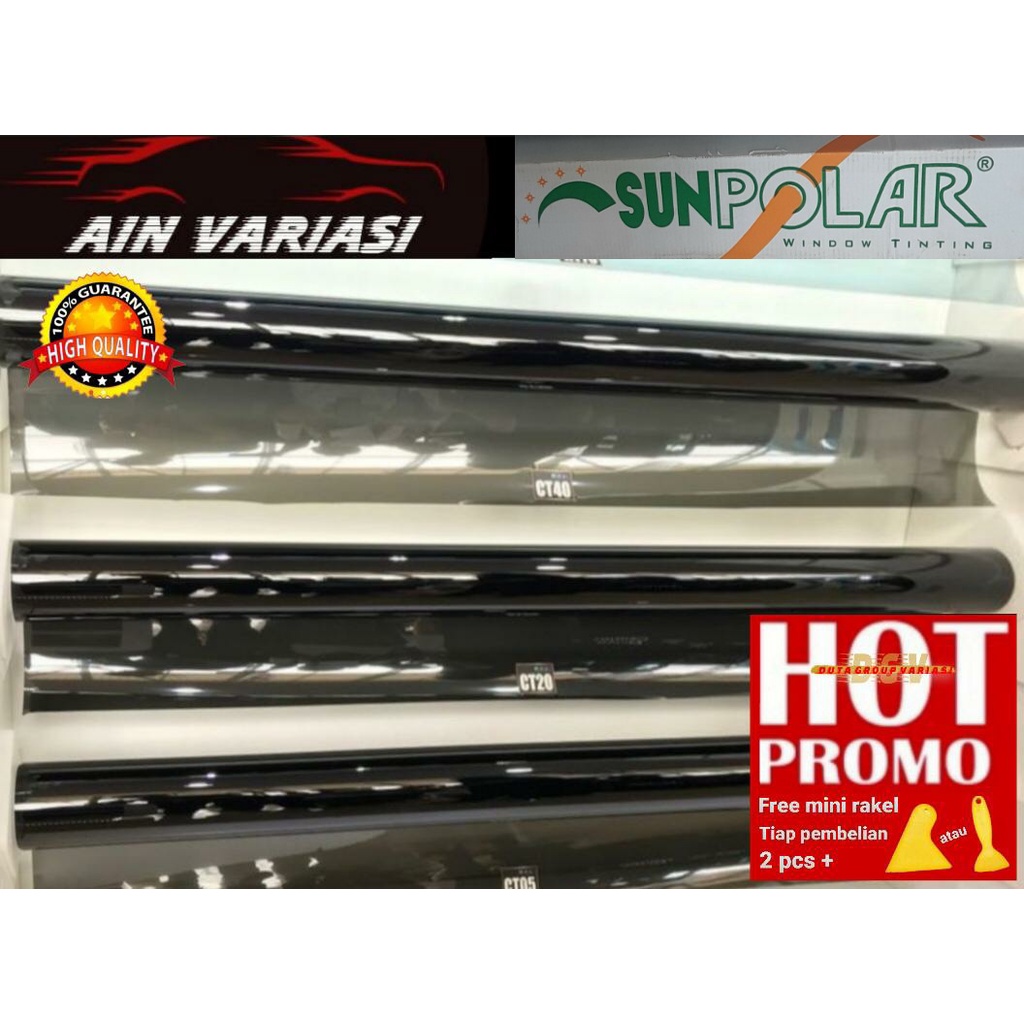 Kaca film mobil merk sun polar hitam (riben) tergelap dari luar, terang / jelas dari dalam