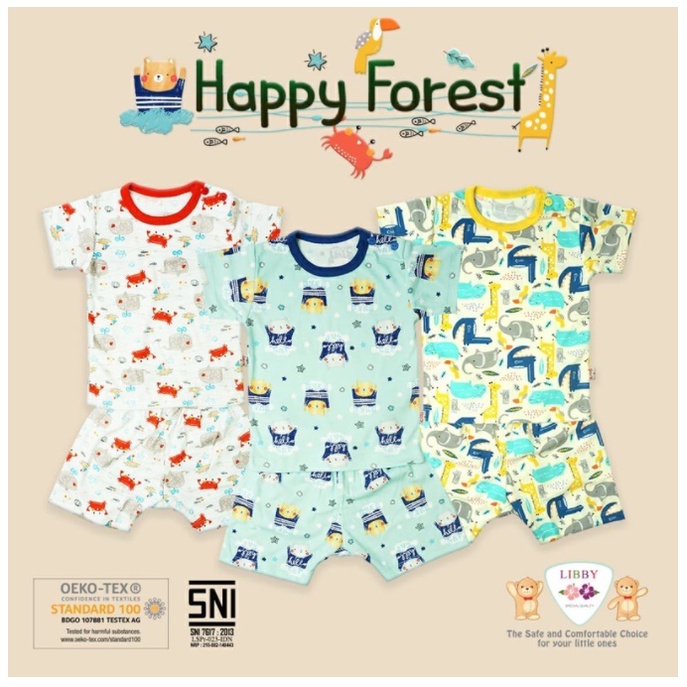 Detail SALE LIBBY Setelan Pendek Aruchi Hunter / Happy Forest NB 3-6m S M L 2L XL XXL Pakaian Bayi Libby CBKS P100