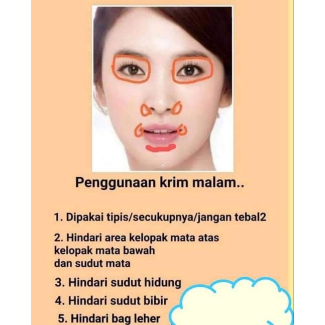 SALEP PELICIN: di gunakan pada malam hari dan oleskan merata ke wajah.