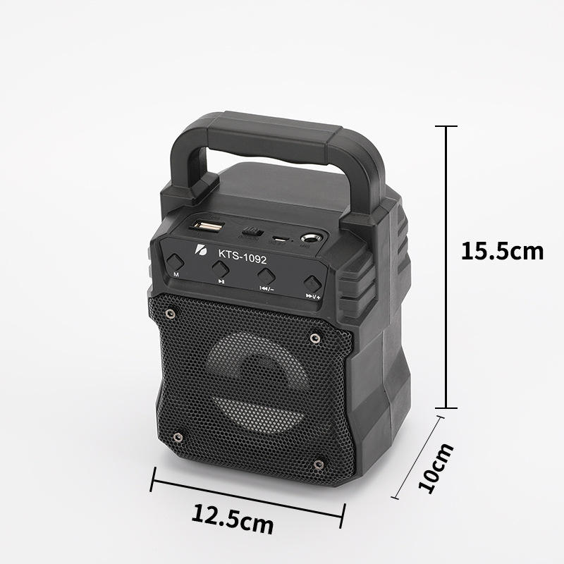 β€ Spesifikasi: β’ Kedatangan baru β’ Model : KTS-1092 β’ Sp Ukuran 3 inci β’ Mainkan musik melalui flash drive Bluetooth β’ Daya output : 5W / 2R. β’ Respons frekuensi : 100Hz-20KHz. β’ Rasio sinyal terhadap noise : > = 85dB β’ Rentang pemindaian FM : 87.5-108.0MHz β’ Pengisian daya USB: DC5V β’ Kapasitas baterai : 600mAh β’ Dukungan memori maks (USB / SD) : 32GB β’ Waktu bermain: Hingga 2 Jam pada volume 75% β’ Waktu pengisian : 2 Jam
