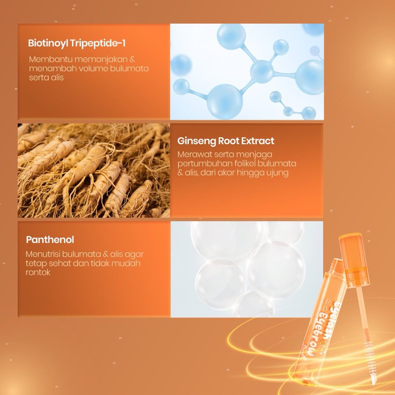 Eyelash & Eyebrow Serum dengan kandungan Biotinoyl Tripeptide -1, Panax Ginseng Root Extract (Korean Ginseng), dan Panthenol untuk menghasilkan Bulu Mata & Alis yang lebih tebal & panjang