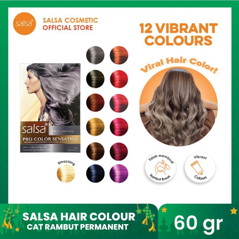 Pewarna rambut dengan double protection melindungi rambut dari kerusakan pada saat pemakaian. Hadir dalam 13 warna yang terang saaat diaplikasikan dan tahan lama. Miliki rambut indah idamanmu dengan SALSA Hair Color sekarang!