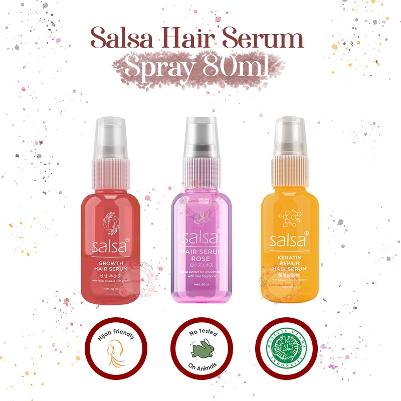 1. Semprotkan SALSA Hair Serum pada batang rambut setengah kering atau kering
