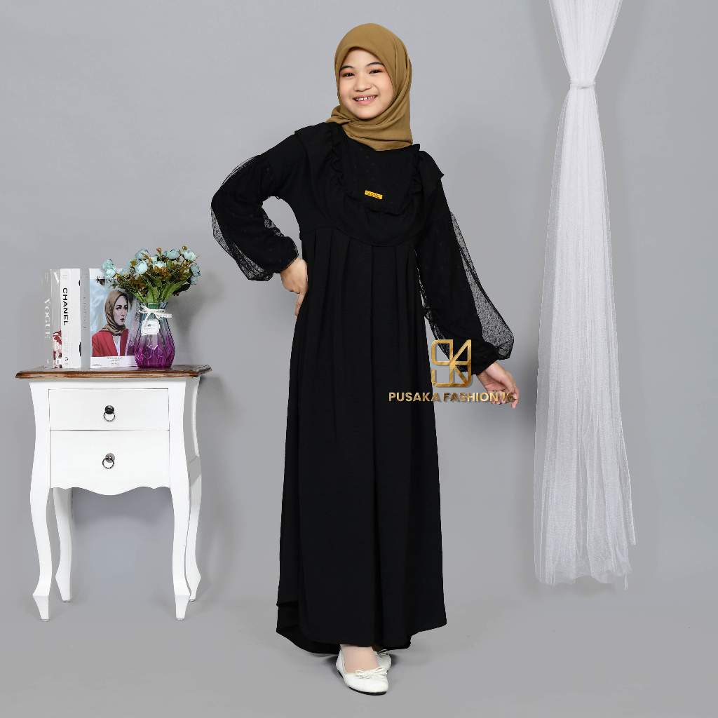 Fashion Muslim > Pakaian Muslim Anak > Pakaian Muslim Anak Perempuan > SALSA KIDS GAMIS remaja cringkle ANAK perempuan remaja tanggung 9-17 tahun MIX TULLE TILE TILLE brukat brokat fashion muslim longdress KID girl serut susun modern premium warna broken white gamis putih tulang manasik haji mengaji terbaru