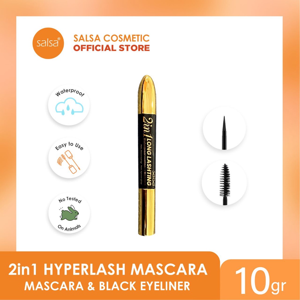 Cantik di tengah perjalanan tak perlu repot, kini SALSA menghadirkan 2in1 Hyperlash yang praktis dengan mascara dan black eyeliner dalam 1 kemasan untuk memperindah mata. Mudah digunakan oleh pemula.