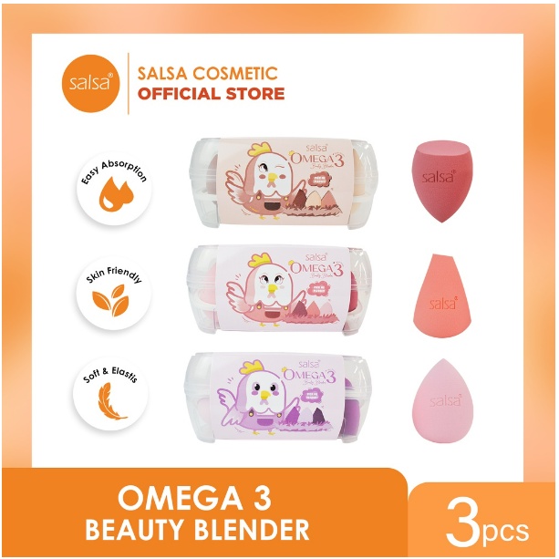 SALSA Omega 3 Beauty Blender - Sponge MakeUp isi 3 Dengan beragam varian warna yang cantik, SALSA Omega 3 Beauty Blender dapat digunakan untuk segala jenis powder maupun liquid makeup. Lembut di kulit dan elastis, memudahkan aplikasi makeup.