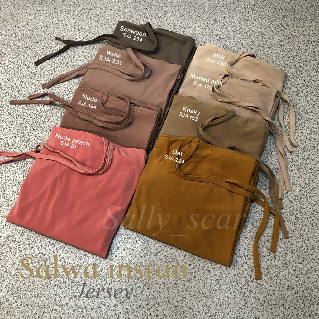 SALWA INSTAN JERSEY _ JAHIT DOUBLE PREMIUM DI BAGIAN KEPALA & TALI __ 🍂harga 💰45ribu/ pcs 🍂material : jersey premium __ Solusi buat yg mau lbh menutup dada, tp tetap keliatan slim, modis & cantik) __ *P depan : +-75 cm *P belakang : +-90 cm *toleransi jahitan 2 cm ya _ *finishing jahit double premium (lbh berkarakter & berkualitas) di bagian lingkar kepala & tali _ hijab rumahan tersimple & ternyaman,tanpe ribet tinggal slup & berasa g pakai hijab krn bahanny yg super ringan,menutup dada tapi g bikin sumuk sama sekali🔥 _ order via shopee (sally_scarf) __ order cepat "klik link in bio" _