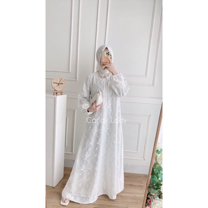 Salwa Raya Maxi / Gamis Putih Bordir Premium
