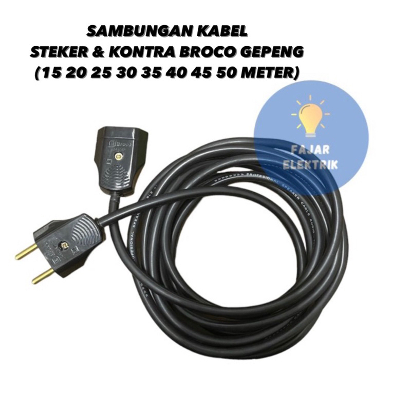 SAMBUNGAN BROCO STEKER/KONTRA GEPENG+KABEL 2X0,75/2X1,5 SNI (15 20 25 30 35 40 45 50 METER)