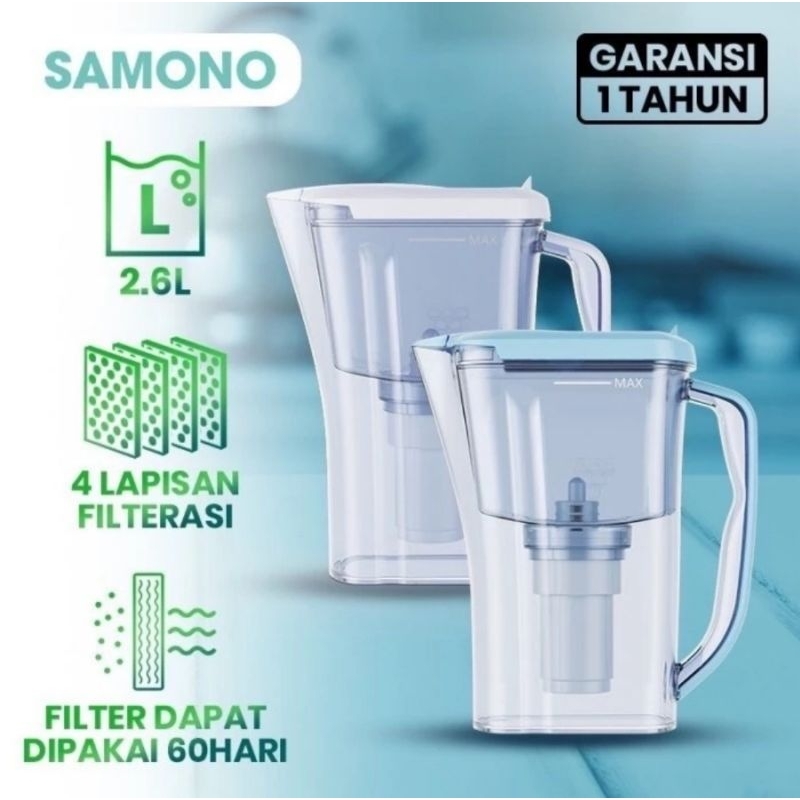 Spesifikasi: Brand : SAMONO Tipe : SW-WFPB26 & SW-WFPW26 Warna : Biru & Putih Kapasitas : 2.6L Bahan : ABS Berat : 864 Gram Dapat 2 Filter