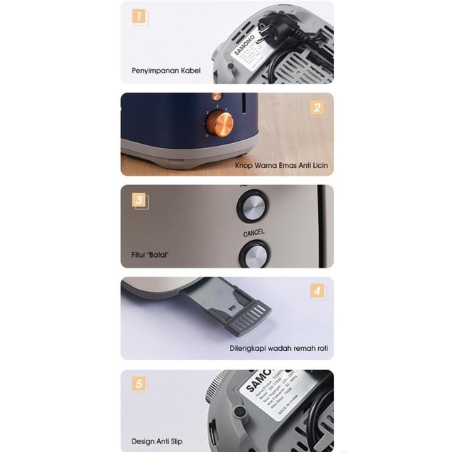 Kelebihan : - Panas yang merata - Ada penyimpanan kabel lsitrik di bagian bawah toaster - Ada laci khusus remahan roti - Tombol pengoperasian yang mudah di klik