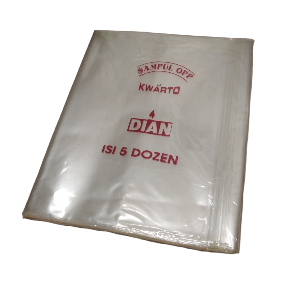 Ukuran : Kwarto (22 cm x 33.5 cm) Tipe : Sampul plastik tebal Berisi 5 dozen / 60 pcs Sebagai sampul buku tulis ukuran kwarto Tanpa perekat, ada dua poket bagian depan dan belakang cover