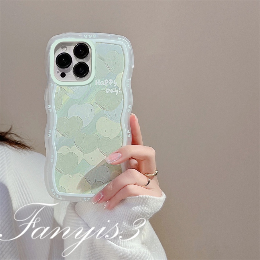 Handphone & Aksesoris > Casing & Skin > Casing & Skin Handphone > Samsung A04 A04E A04s M23 A13 A03 A23 A33 A53 A73 A03s A02 A22 A52 A52s A72 A32 A51 A71 A50 A50s A30s A31 M53 M32 A20 A30 Green Love Wave Frame Phone Case TPU Soft Protective Cover