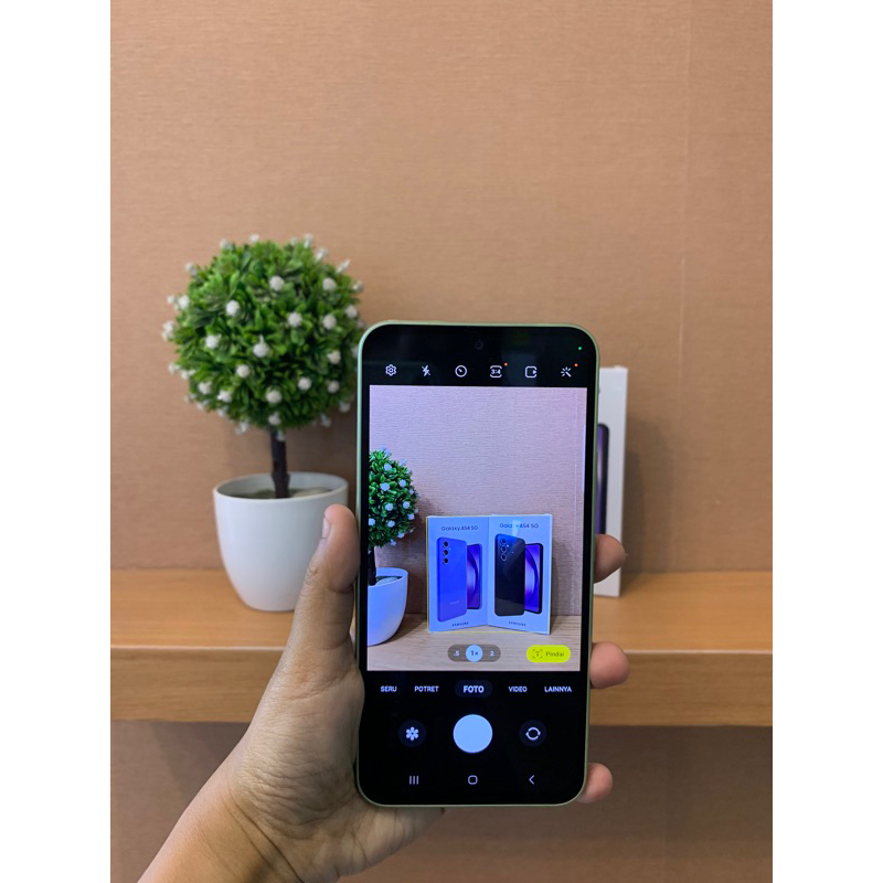Galaxy A54 5G • Layar Super Amoled 120Hz, sangat halus dan mempermudah untuk mengscroll aplikasi • Processor Exynos 1380, tidak mudah ngelag saat digunakan • IP 67 (Anti air dan debu kedalaman 1 meter) • 50 Mp camera utama (Ois) mempertajam foto, 12 Mp (ultrawide), 5 Mp (Macro) • 32 Mp camera selfie • 5000 mAh • Fast Charging 25W