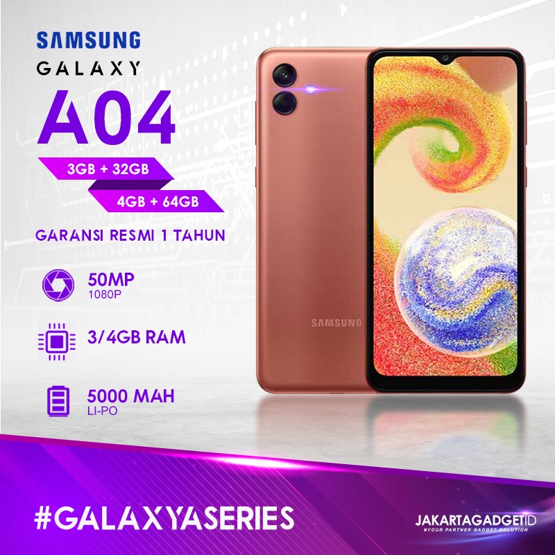 Samsung Galaxy A04 3GB+32GB 4GB+64GB Garansi Resmi Samsung 1 TahunSamsung Galaxy A04 3GB+32GB 4GB+64GB Garansi Resmi Samsung 1 Tahun