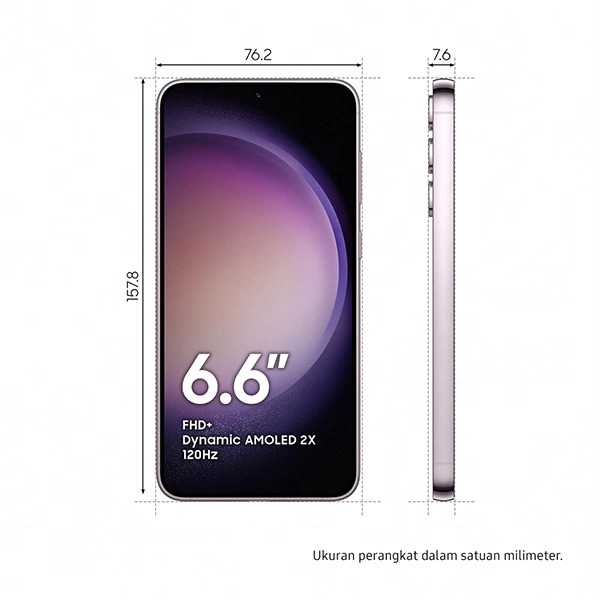 - Processor : Snapdragon 8 Gen 2 (4nm) - Size : 6,6” - Technology : Dynamic AMOLED 2X, 48-120Hz - Resolution : FHD+ (2340 x 1080) 393 ppi - Rear Camera Resolution : 50.0 MP + 12.0 MP + 10.0 MP - Main Camera Auto Focus : Yes - Rear Camera - OIS : Yes - Rear Camera - Zoom : 3x optical zoom, Digital Zoom up to 30x - Front Camera Resolution : 12.0 MP - Front Camera Auto Focus : No - Video Resolution : UHD 8K (7680 x 4320) I @24fps - RAM : 8 GB - ROM : 256GB / 512GB - SIM Tray : Dual-SIM - Network Type :5G - USB Interface : USB Type-C - USB Version : USB Type-C 3.2 - Earjack : - - Bluetooth Version : Bluetooth v5.3 - NFC : Yes - Battery Capacity : 4700mAh, Super Fast Charging, Fast Wireless Charging 2.0, Reverse Wireless Charging