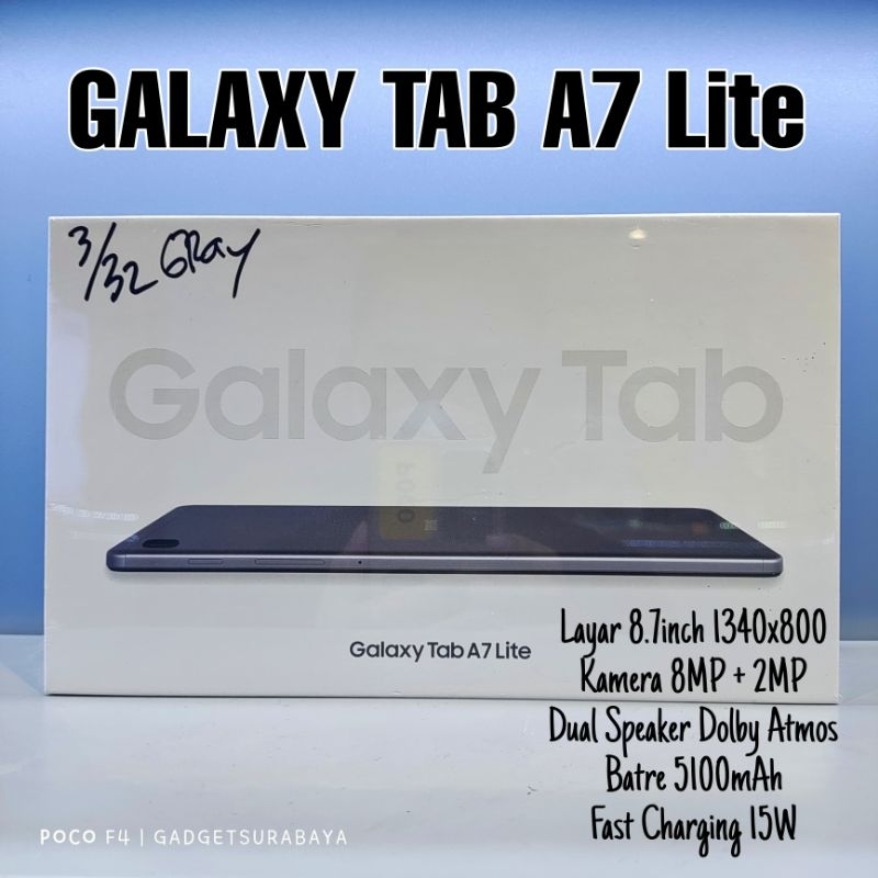 Detail Samsung Galaxy Tab A7 Lite Ram 3GB Internal 32GB Baru Segel Garansi Resmi