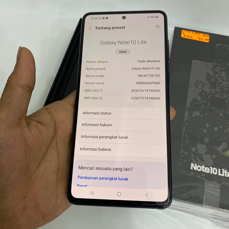 •Brand = samsung note10 lite 8/128 4g lte ex sein • unit resmi imei suda pasti aman •Kondisi second = normal no minus ori mesin segel •Minus = tidak ada minus all 95% sisanya wajar bekas di pake suda lebih dari 2 tahun •Kelengkapan = unit Box charger